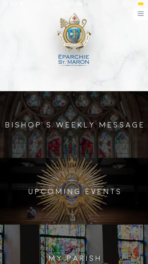 Application displays Eparchy related information as per its current website. This information includes Eparchy News, Eparchy's Structure, Bishop's Schedule, etc. Info shown via application is the same per http://www.maronites.ca/. Targeted audience is Maronites across Canada. Feature of the app include public information about Eparchy and all its parishes across Canada.