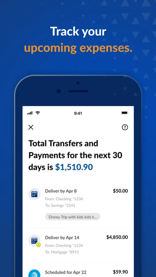 · Preview 30 days of scheduled transfers and online bill pay payments in one place.