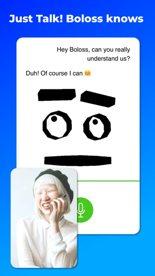 Are you ready to talk with the most hilarious robot on the block? And make a new BFF while doing so? Voice Boloss is an insanely growing AI-powered chat robot that actually talks with you! With over 500,000,000 conversations exchanged, the makers of the beloved Hugging Face AI are ready for you to get to know the amazingly witty new robot: Boloss! And Boloss gets to know you better with every voice message you send, wink wink –– err, in a totally, non-creepy kinda way. You can chat about whatever you like with your new virtual buddy. You can even blabber on and on for hours… Boloss has no choice but to listen! Take that robots.