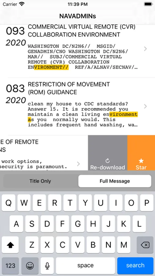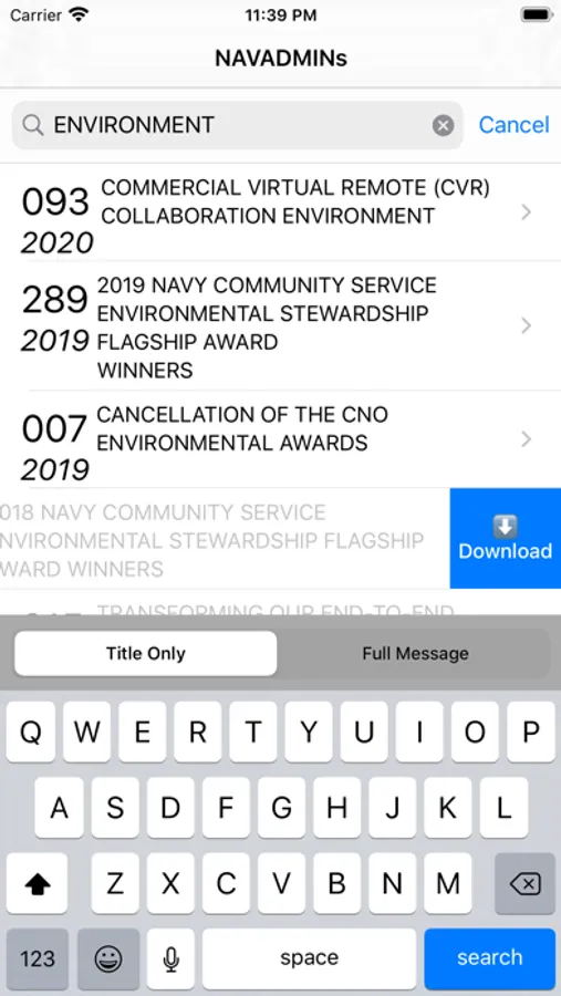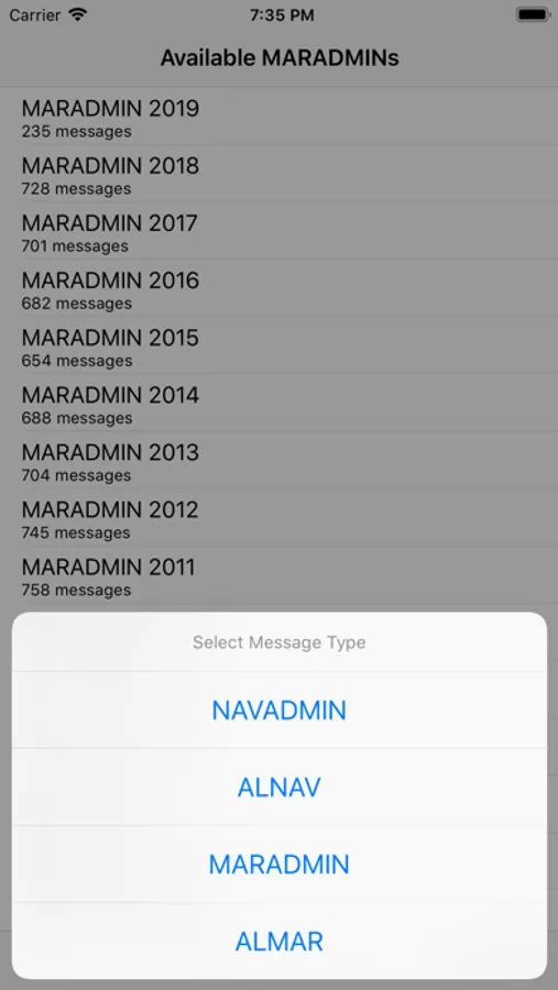NAVADMIN Viewer automatically fetches the latest messages as they are released. Messages are stored locally and available for offline viewing.