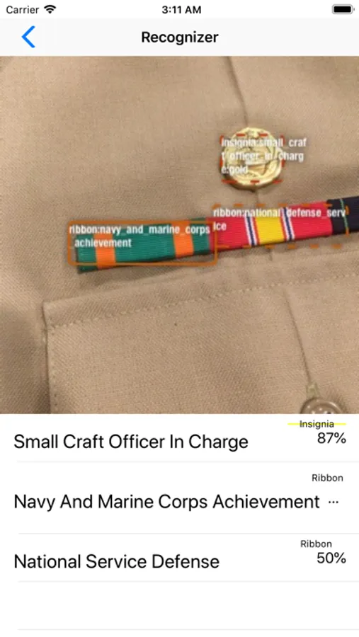 Experimental Uniform Detector detects common military ribbons and medals using the camera.