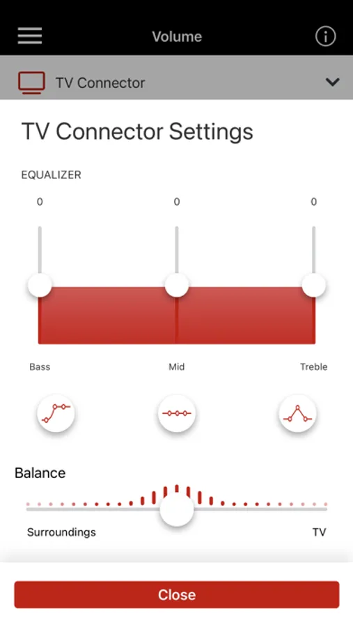 - Adjust the balance between background noise and the streamed signal when listening to streamed Bluetooth® audio* or watching television in the TV Connector program (requires optional TV Connector accessory)