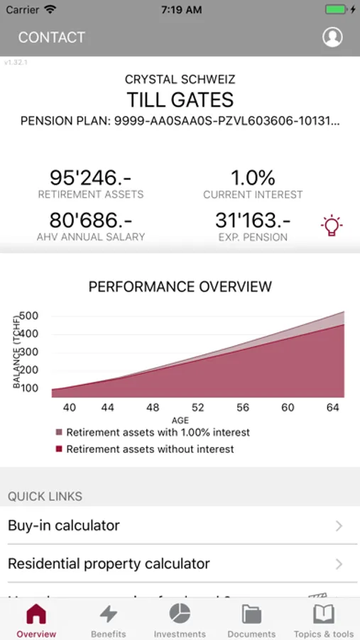 This app is available to all members of the Convitus collective foundation. With this user-friendly, comprehensive and innovative app, policyholders can access their personal pension data, carry out simulations and obtain information on pension issues at any time and from anywhere. The app is connected live to the Convitus management system.