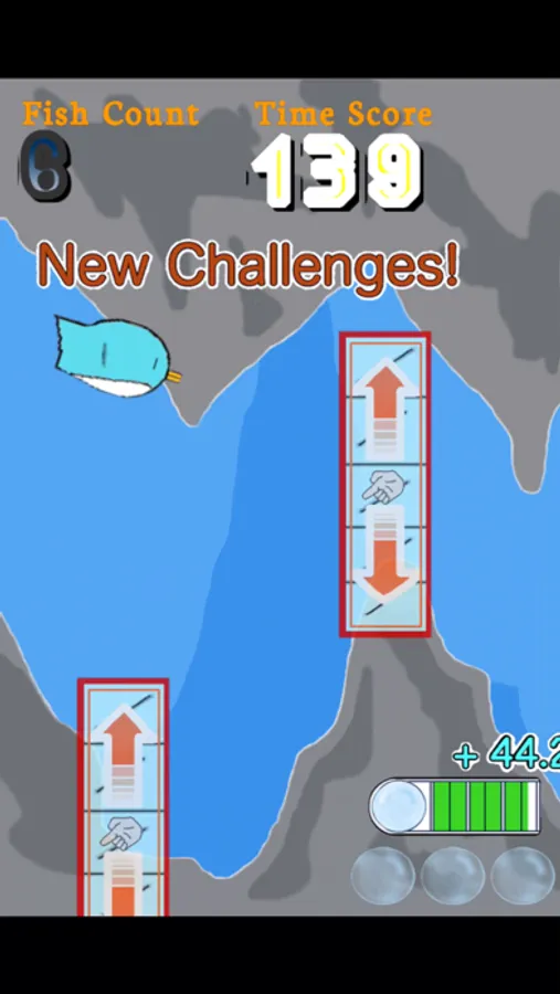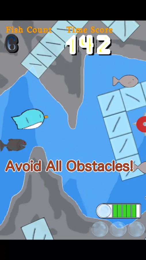 Dive deep into the underwater caves of the arctic, to help Peter and Sally, the starving penguins, navigate the even more treacherous ever-changing and never ending icy landscape, who are on the look out for dinner, while avoiding deadly obstacles, such as icicles, ice cubes, rogue ice cubes, mines, piranhas, and whirlpools, and in addition, avoiding drowning by catching air bubbles. Also discover and avoid to eat sick fish, which you can move out of your penguin's way with eight taps on them.
