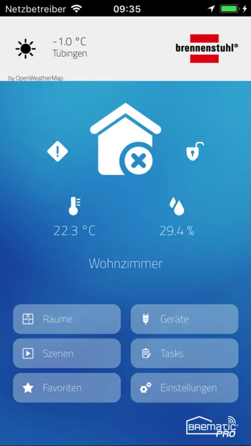 Mit der BrematicPRO App haben Sie Ihr Zuhause immer im Blick, auch von unterwegs. Die App bietet einen komfortablen Zugriff auf Ihr BrematicPRO SmartHome System. Kontrollieren und bedienen Sie per Smartphone oder Tablet alle Aktoren und Sensoren die in Ihrem zu Hause installiert sind wie z.B. Funkschaltsteckdose, Bewegungsmelder, Tür- und Fensterkontakt, Temperatur- und Feuchtigkeitssensor, Wassermelder, Rauchmelder … .