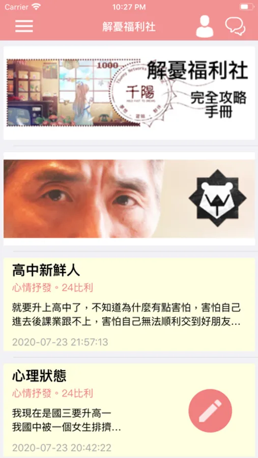 發現一個能讓你放心抒發心事的匿名APP,並且可以感受到解憂使者們用心傾聽與回信的新世界->解憂福利社