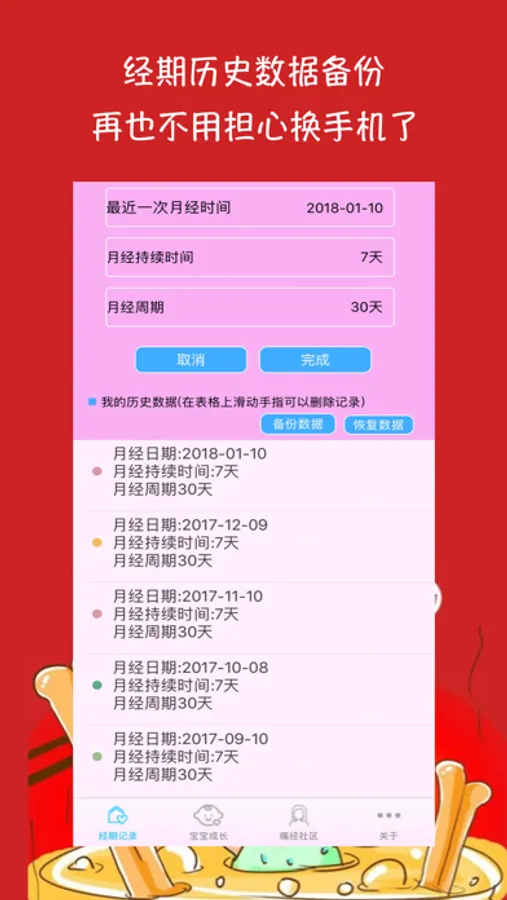 提供经期记录同步功能,再也不怕换手机丢失数据了
