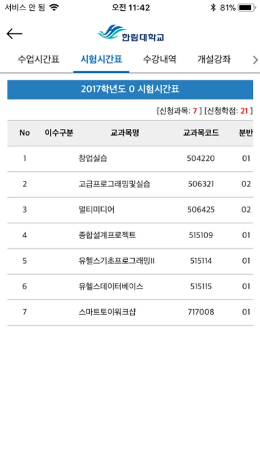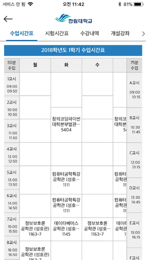 해당 앱은 공지사항, 학적, 수업, 성적/장학, 학생생활관 등의 앱서비스를 제공하며,