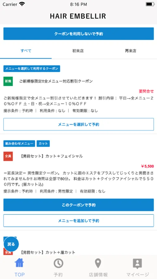 お得なクーポンが配信されます。ネット予約時にクーポン利用での予約も可能なので来店時もスムーズに施術頂けます。