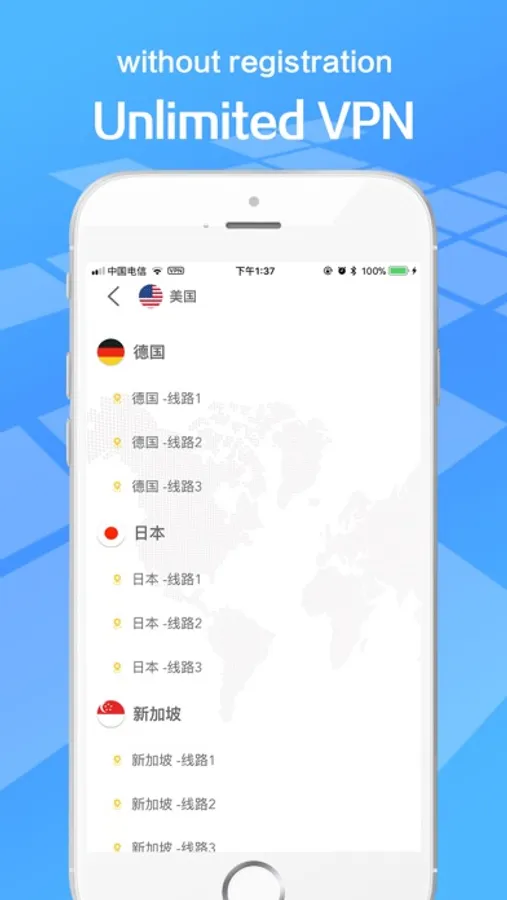 - One-tap connect and no need registration