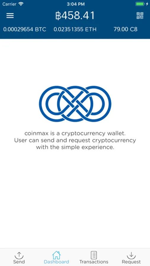coinmax is a cryptocurrency wallet. User can send and request cryptocurrency with the simple experience.