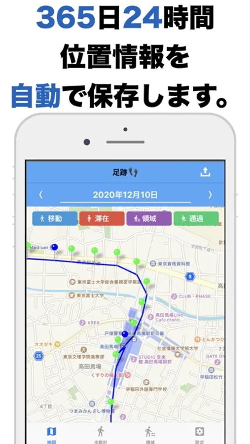 ・移動場所、滞在した場所の位置情報をバックグラウンドで記録する位置情報アプリ