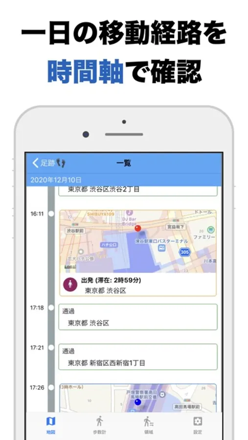 ・いつどこに行ったのかを確認して、自分の一日の行動を振り返れる