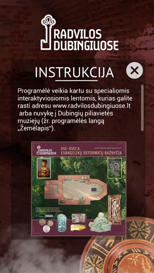 Papildytosios realybės aplikacija leidžia pažvelgti į Dubingiuose gyvavusią garbingiausių LDK didikų istoriją. Įsidiegę mobiliąją programėlę ir nukreipią išmanųjį įrenginį į specialias lentas, išgirsite pasakojimus, pamatysite archeologinių tyrimų nuotraukas, apžiūrėsite atkurtus 3D modelius, 360 (laipsnio ženkliukas) nuotraukas ir kitą interaktyviąją informaciją. Archeologiniai piliavietės tyrimai pradėti dar 1939 metais, tačiau tik nuo 2003 metų inicijuoti plataus masto tarpdiscipliniai tyrimai (vadovas prof. A. Kuncevičius) leido surinkti įspūdingą radinių kolekciją.