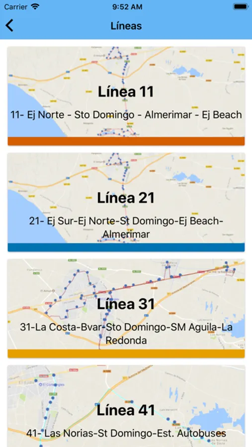 - Un plano de los recorridos de los autobuses con su respectivo orden y paradas.