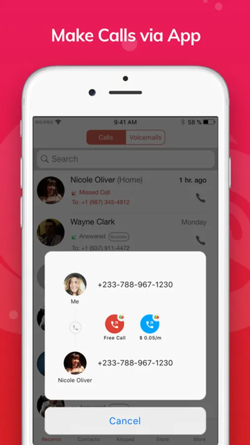 InstaVoice ReachMe is a roaming app that helps bring down your roaming charges dramatically! Make and receive calls over data or Wi-Fi, from your own number. Also, it manages your voicemails and missed call alerts in a beautiful chat-like interface.