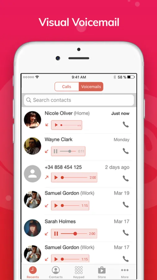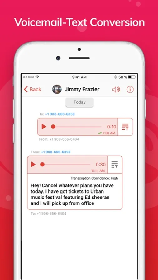 Listen, reply to, and manage unlimited voicemails for all your linked numbers in the app.