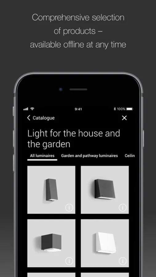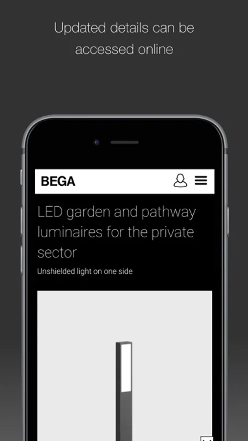 With the free BEGA AR+ app, our luminaires can be viewed from all angles in the area they are to be installed. Simply download the convenient app to your smartphone or tablet and it's ready to use. After scanning the planned area of installation, the selected luminaires can be placed.