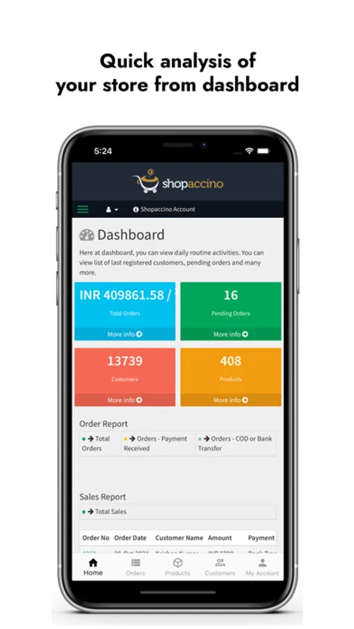 Shopaccino application help merchants to manage their own store. Now you can manage your e-commerce website through this mobile application with user-friendly interface.