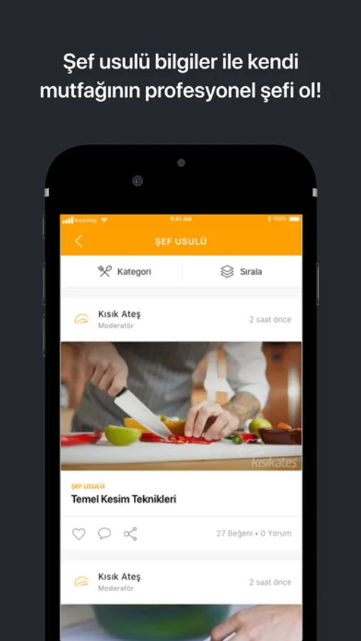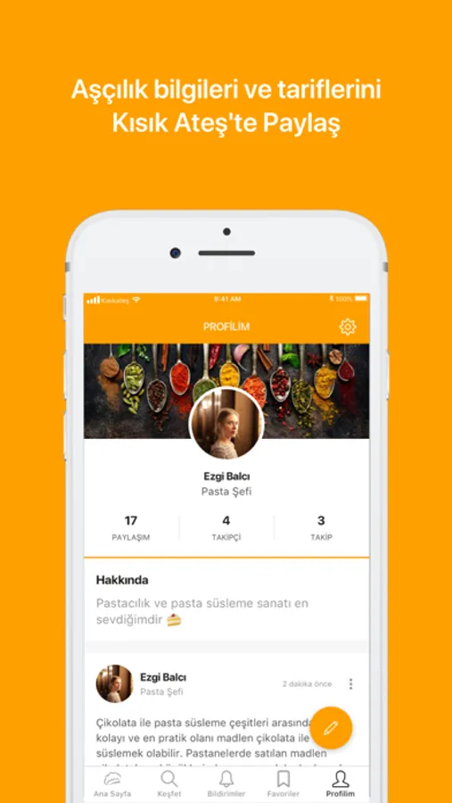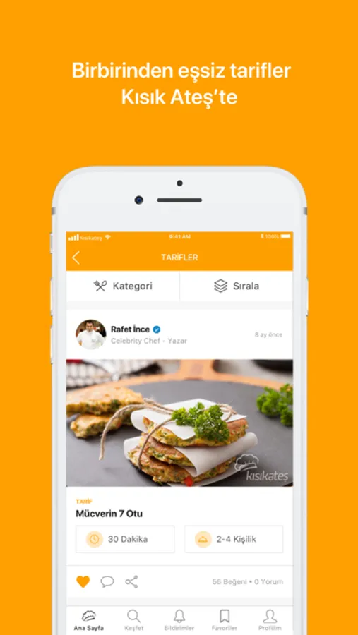 Kısık Ateş mobil uygulamasına kaydolup kendi özel tariflerinizi kendi profillerinizde paylaşarak tarif arşivinizi oluşturabilir ve uzman şeflerin beğenisine sunabilirsiniz. Editörün seçimi ile yaratıcı tariflerini öne çıkartabilir ve uzman şeflerin tarifleri ile aynı yerde yer alabilirsiniz.