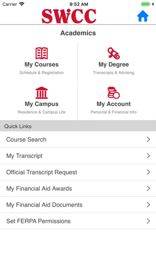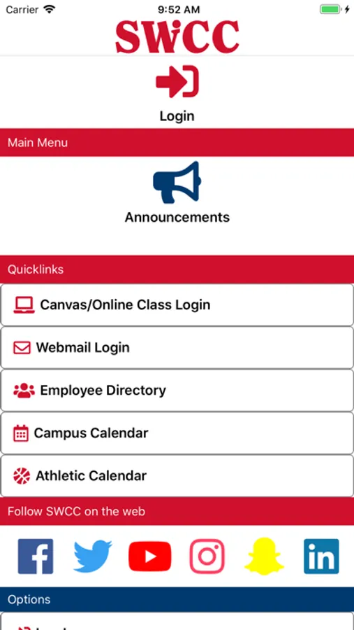 The SWCCyou mobile app allows students, employees, and faculty members to manage and explore course/registration information, grades, schedules, student account information, announcements, financial aid, and college news.
