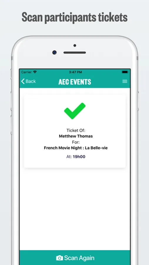 AEC Events is the application for AEC software users. When linked to your AEC software, it allows to verify the participants to a cultural event by scanning the QR Codes on the entry tickets issued by AEC.