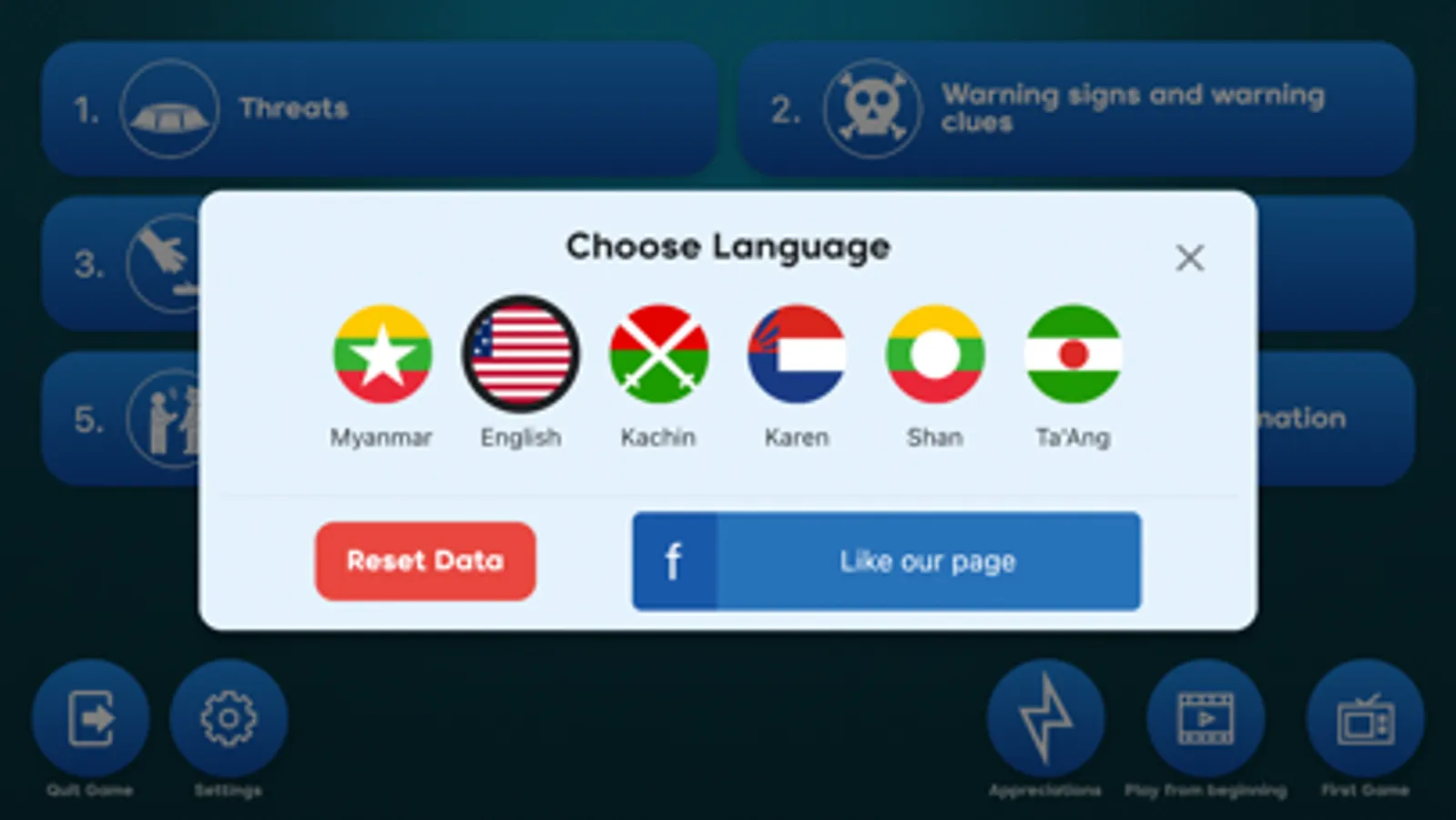 This is the free interactive Mine Risk Education training for Myanmar. The training takes around 50 minutes and takes you through key messages on how to stay safe and prevent death and injuries from landmines, unexploded ordnance and other explosive devices in affected areas. You will also learn how to recognize dangerous and suspicious items and areas; what to do if you see suspicious items or areas and learn what might happen if you do not follow safe ways.