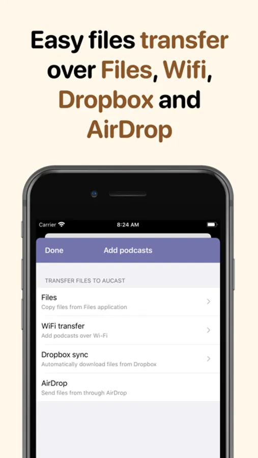 A simple way to transfer and play mp3, aac and m4a audiobooks on your iPhone or iPad.