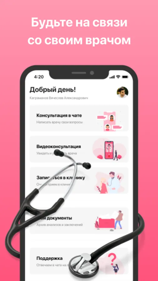 - легко связаться с лечащим врачом через текстовый чат, либо через видеосвязь