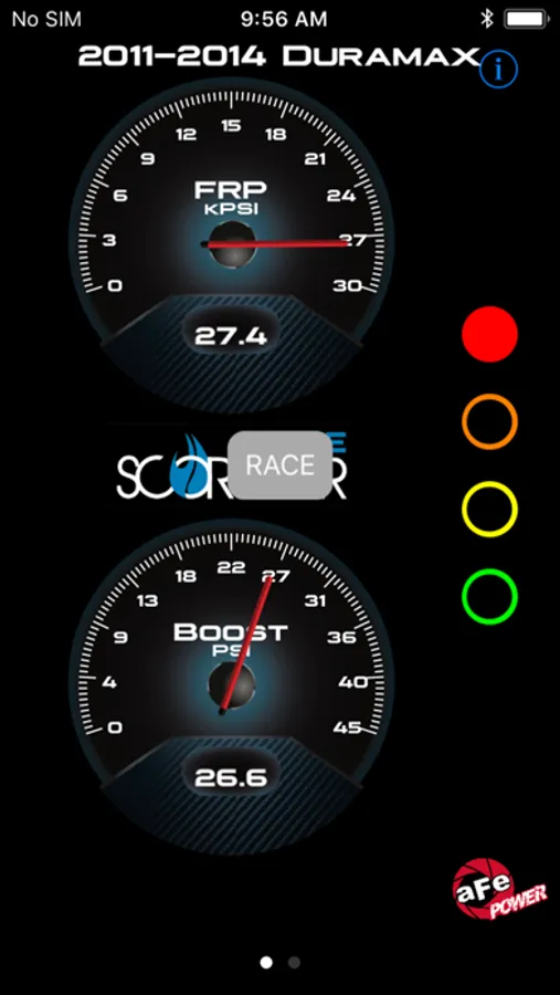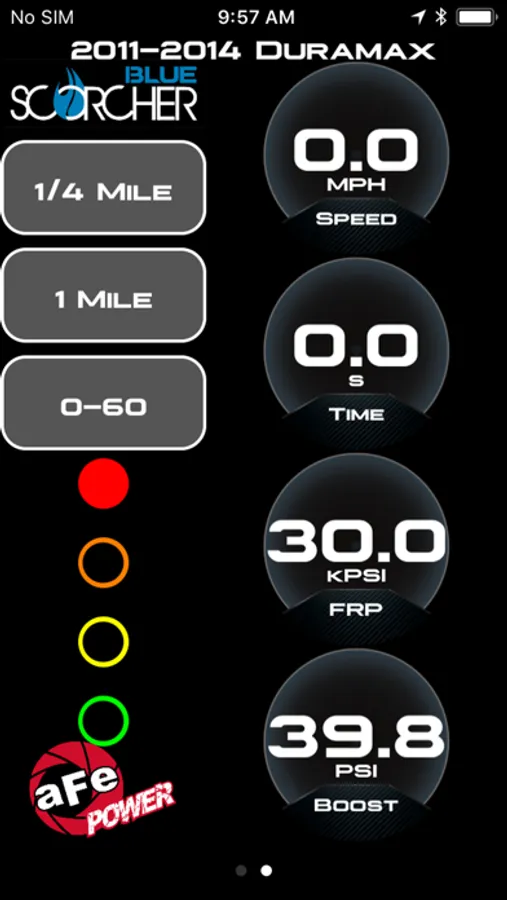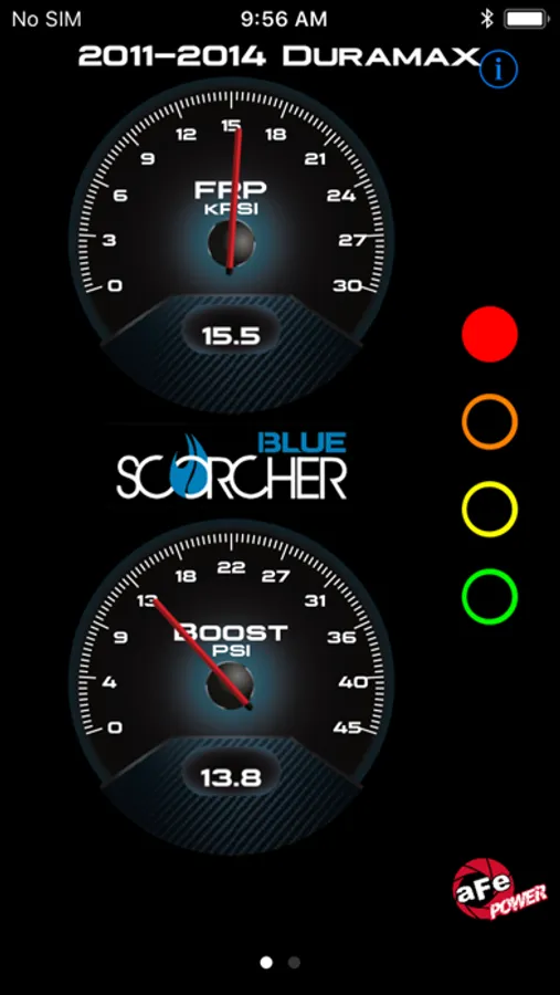 The new aFe Scorcher App works in conjunction with the aFe Power Scorcher Blue Scorcher Module to be able to Monitor 2 engine perimeters and change performance levels on the fly.