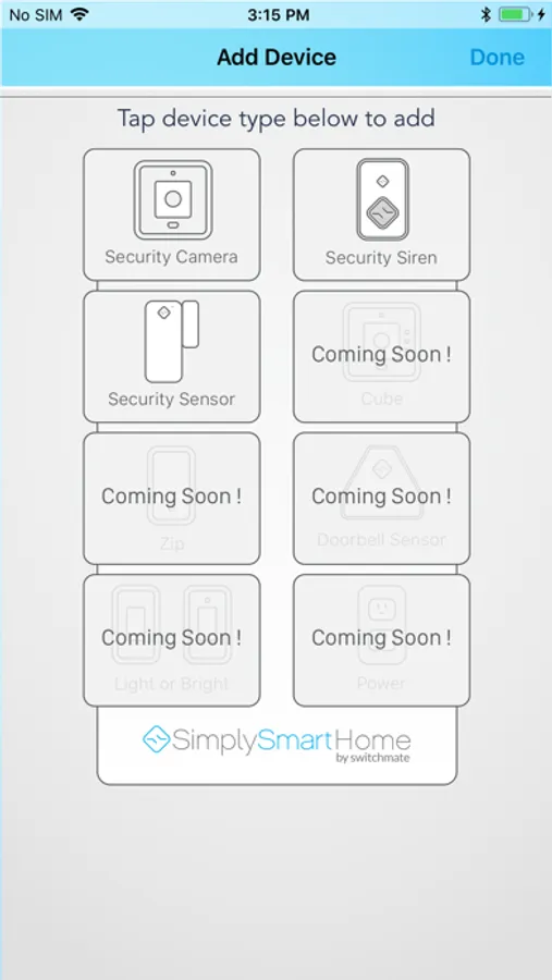 PLEASE NOTE: The SimplySmart Home app is currently limited to our Cube Camera (Cube, Zip, Doorbell Sensor) and Security System (Security Camera, Zip Siren, Window/Door Sensors)