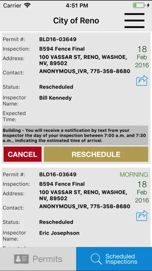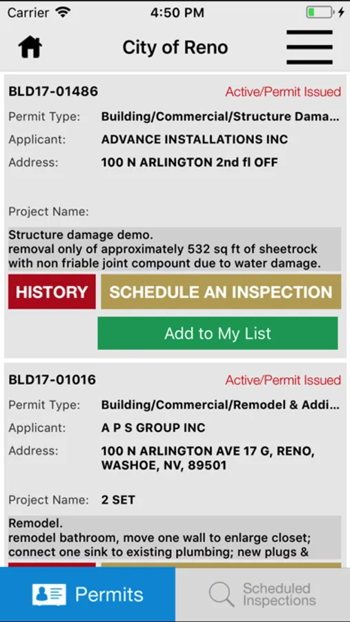 Reno Building Inspections app allows contractors and homeowners to request inspections on their active Reno permits with just a few clicks.