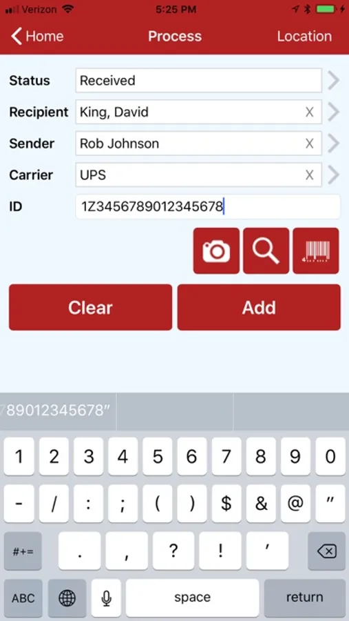 1. Receive and log packages when they arrive using your iPhone or iPad. Scan the barcode using your camera or a Bluetooth scanner.