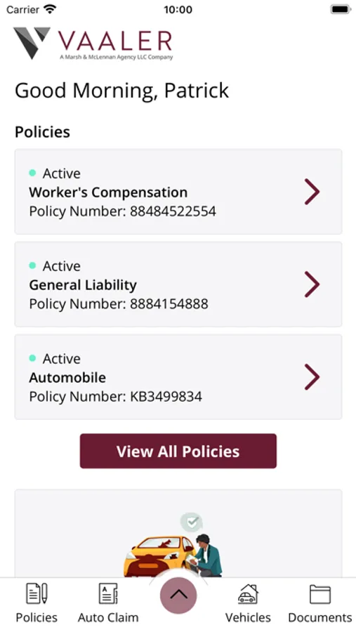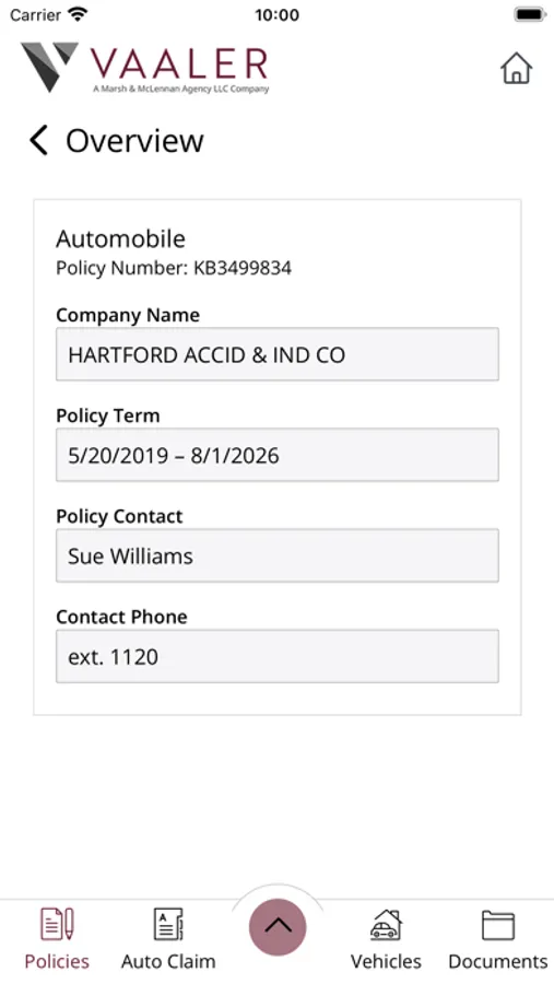 Vaaler Insurance Mobile provides clients with the ability to easily access auto ID cards, policy details, agency contacts, vehicle details, and insured documents.