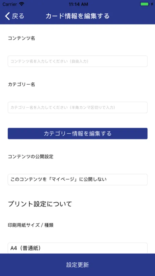 ズ/プリント期限/プリント上限枚数などの「カード情報」を編集する事ができます。