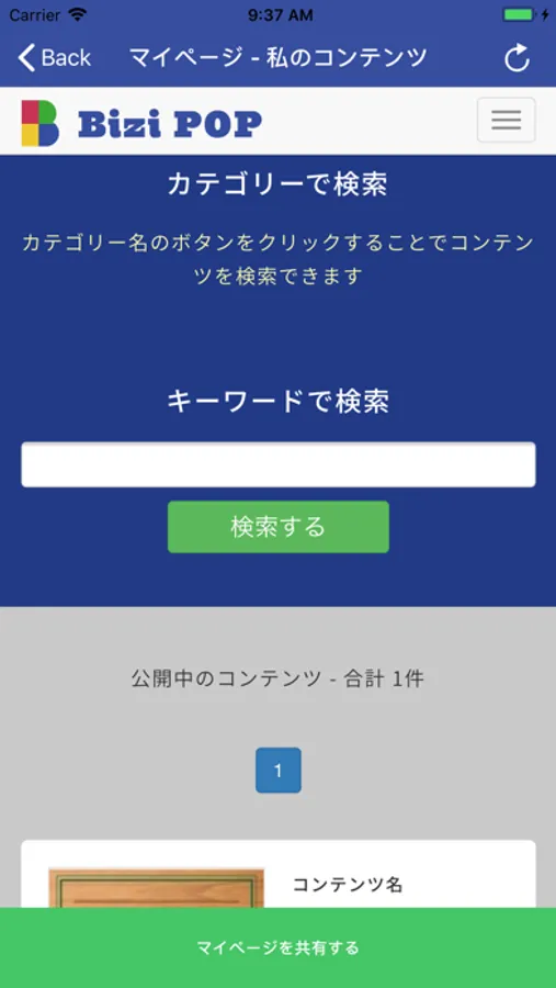 ンテンツを「BiziPOP BOX」のキャビネットで一覧する事ができます。