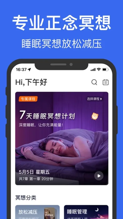 - 睡眠引导:由我们录制睡前引导、睡眠冥想、调节失眠问题、睡眠质量管理,让您享受更深度的睡眠。