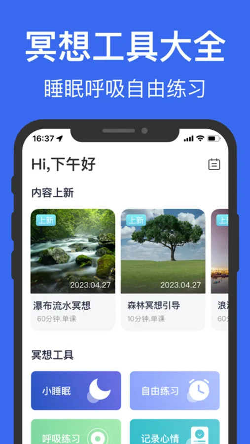 1,定制个人冥想练习计划,遇见美好的自己。