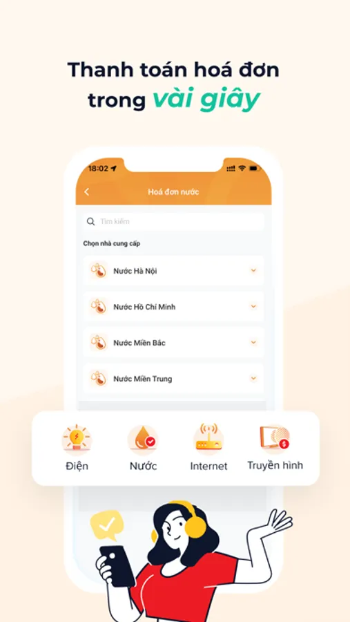 Thanh toán hóa đơn tiền Điện, Nước, Internet, Truyền hình nhanh chóng, tiện lợi nhờ tính năng tự động lưu mã khách hàng, quản lý chi tiêu dễ dàng.