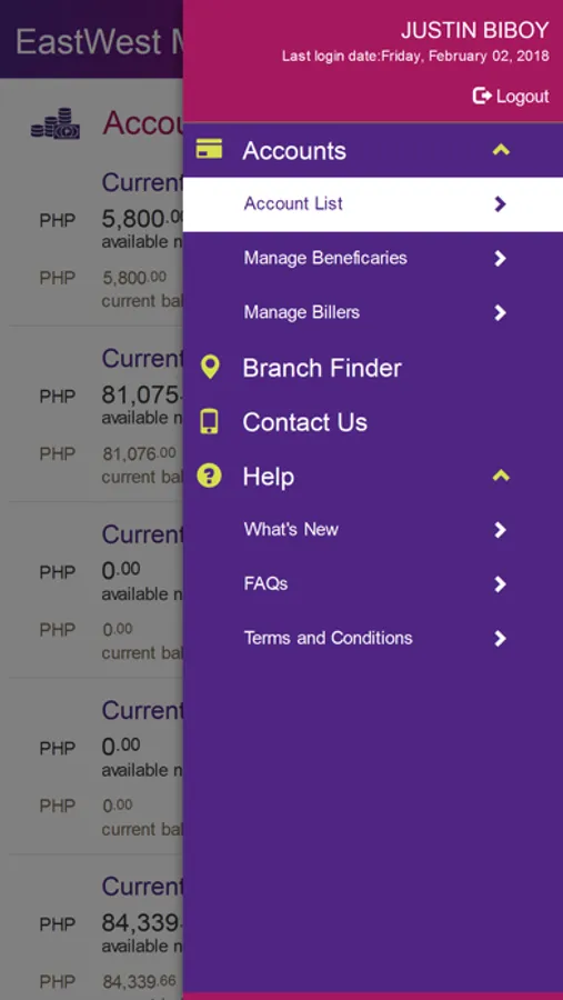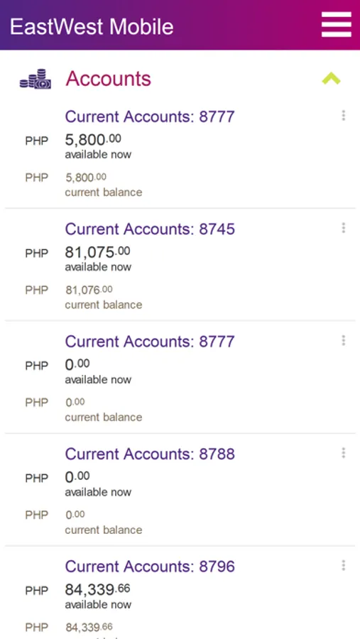 EastWest Mobile is a banking app designed for customers enrolled in EastWest Online Banking, so they can conveniently access their accounts - whether Savings, Checking, or Credit Cards - on mobile devices.