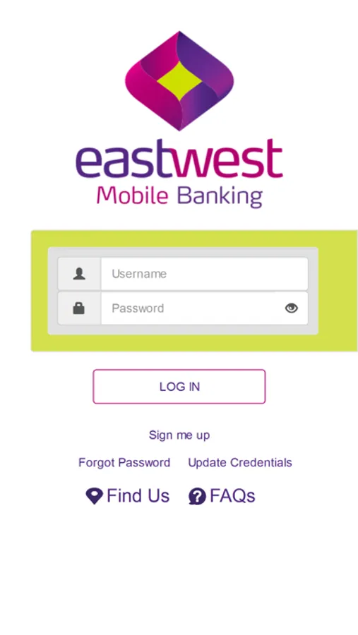 Existing EastWest Online Banking Personal users simply need to log in with their Online Banking credentials to start using the app. For new users, self-service registration is easy and convenient through the "sign me up" function on the app's log in screen.