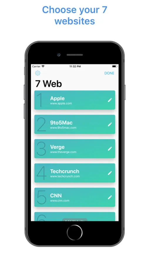 Choose your favorite websites (Up to 7) that you frequently visit. With a single tap launch all your websites and navigate between them seamlessly with a single swipe.