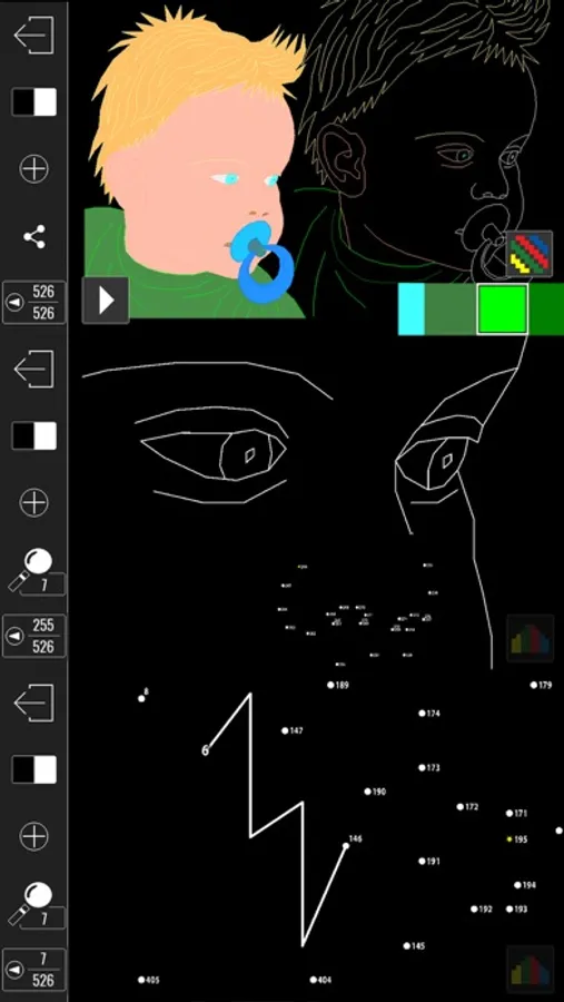 - Share your dot to dot creations on social networks with family and friends by picture or by animation.