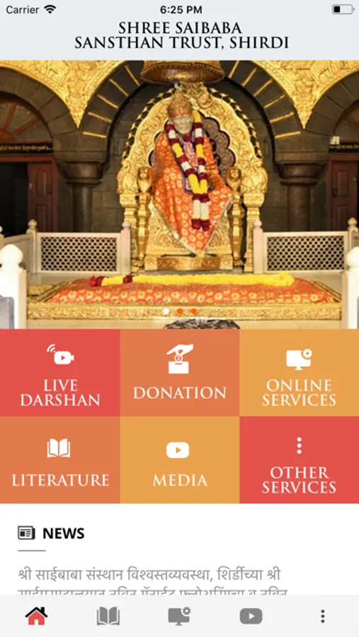 "Saibaba Shirdi" is official application by Shri Saibaba Sansthan Trust,Shirdi. Devotee can view SSST published Literature (Sai-Satcharitra, Sai leela, Aarti), avail Sansthan Online Services, Sansthan media. Devotee can take online Darshan (live) using the application.