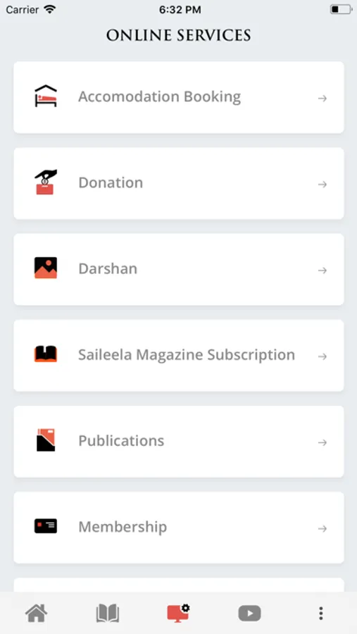 Devotees can avail online services includes Donations, Darshan Passes, Accommodations, Palkhi Registration, Publications, Memberships etc.