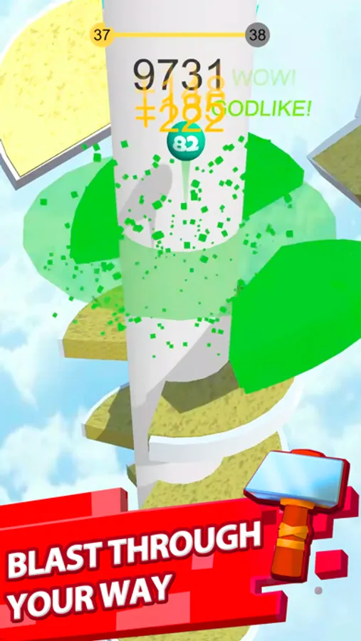 Your ball drops like a brick through colorful helix platforms that block its descent, but if you hit a red spot, it's all over! Your ball shatters to pieces and you have to start your fall all over again.