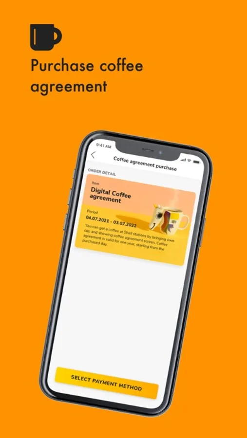 • Coffee agreement on mobile – add or buy a coffee agreement directly in the app, valid for 365 days.