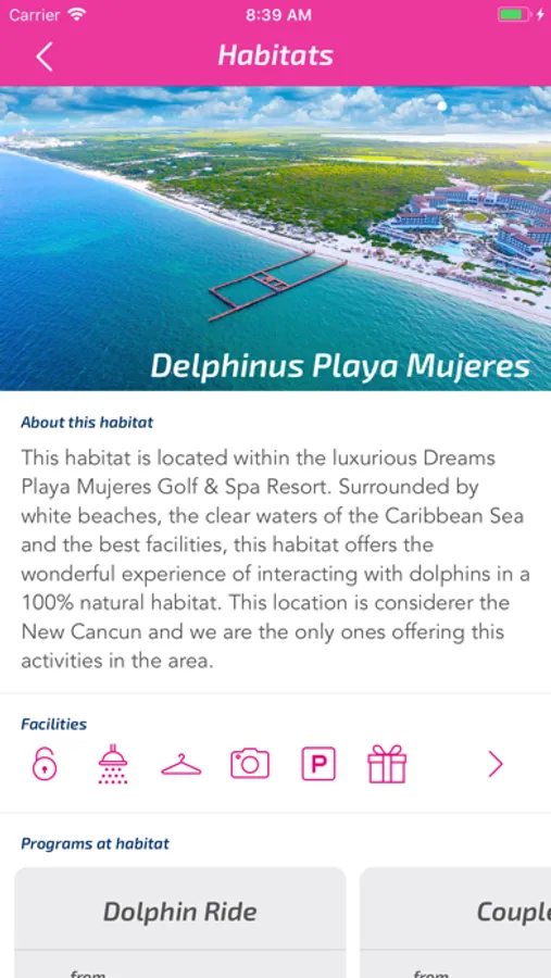 Delphinus Cancun Swim with dolphins programs, habitats and contact information.