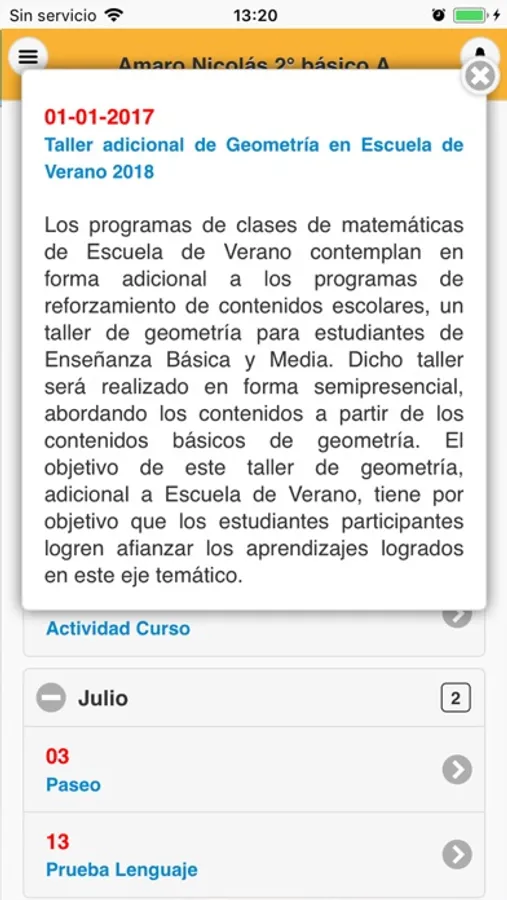 Que puedan visualizar contenido directamente en el celular, como notas, anotaciones, asistencia, atrasos, calendario de eventos, fotos, hoja de vida, compañeros de curso.