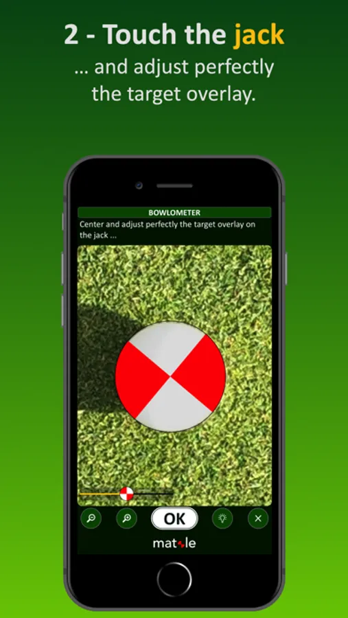 2. The user only has to touch the Jack and then the Bowl (Wood) on the screen and the application will automatically – through advanced visual recognition technology, locate them and provide an accurate measured distance.